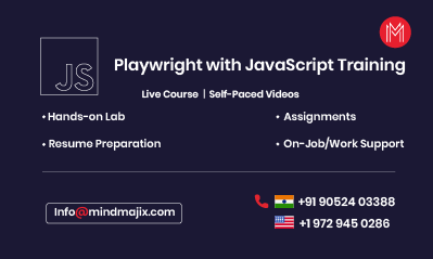 MindMajix’s Playwright with JavaScript course develops your skills in creating objects and object methods, as well as working with various arrays. This certification training introduces you to the Playwright testing framework and equips you to perform end-to-end cross-browser testing. You will learn how to use Playwright functions and their scope, set up Playwright projects with JavaScript, and debug Playwright scripts. You will learn to perform shadow DOM testing, make API calls, manage authentication, and integrate Playwright with CI/CD pipelines.